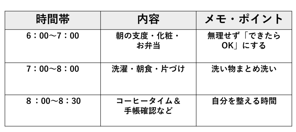 - 1日の家事スケジュール例(表形式)